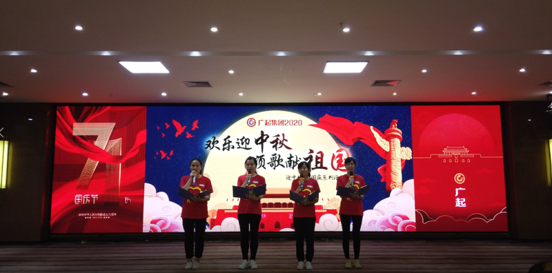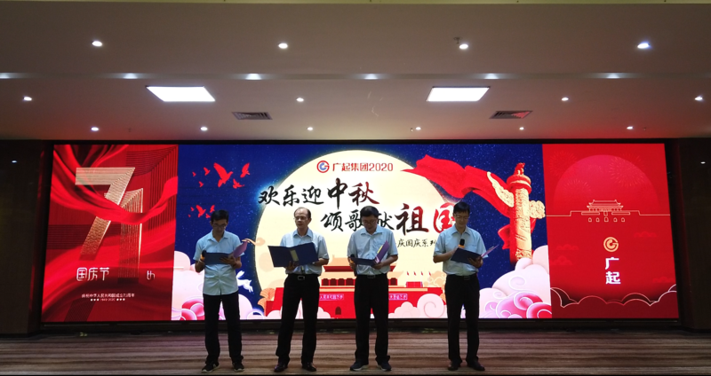 9月27日广起集团一年一度的“迎中秋、庆国庆”系列活动,在云浮基地如期举行。今年活动的主题“欢乐迎中秋,颂歌献祖国”,旨在展现广起集团员工积极进取,奋力拼搏,用于争先的精神面貌,打造富有特色的广起文化。因为新冠肺炎疫情的加入,今年的庆祝活动较往年增加了新的元素和更浓郁的爱国情怀。